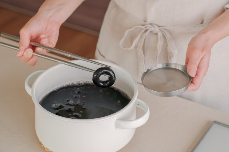 また、家事問屋の「てつまろ」を黒豆煮の鍋にポンと入れるだけで、艶やかな黒色に仕上がり、鉄分補給にもなります。