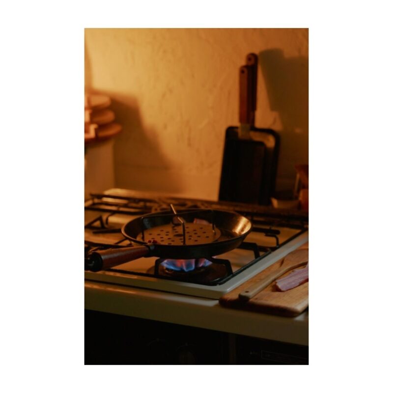 フライパンをしっかりと温めて、さらにベーコンプレスを使えば、均一かつカリッとジューシーに。
