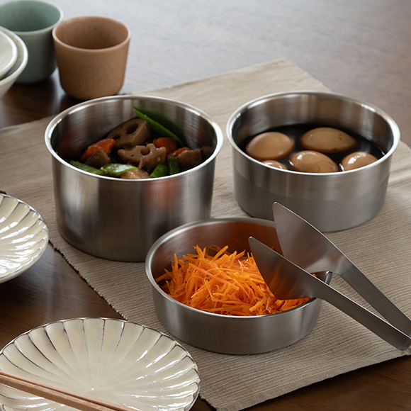 食材の保存だけでなく、そのまま食卓に出せるデザインとサイズです。