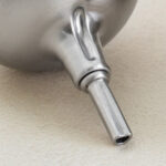 受け口がすぼまっているので手で押さえやすく、液体を勢いよく注いでもこぼれにくい形です。