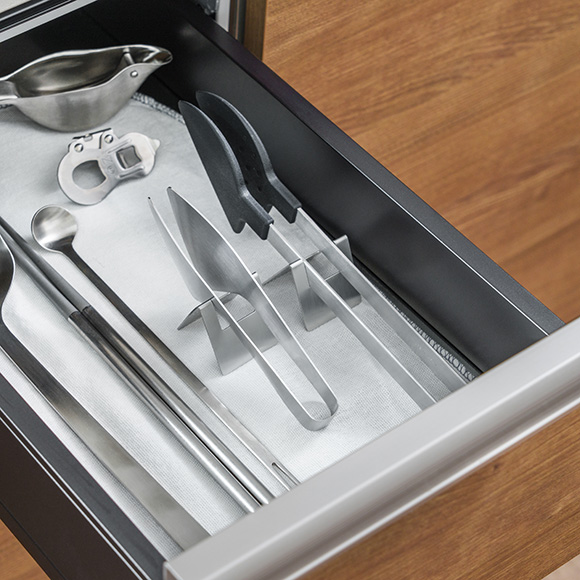 トングを閉じた状態でしまえるので、引き出しでの収納時にも場所を取りません。