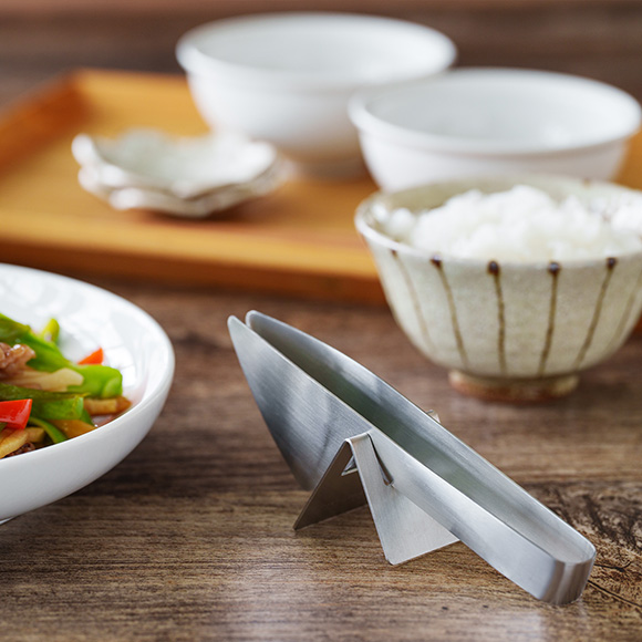 開いてかさばるトングの置き場所として、お使いいただけます。トングは閉じたまま置けます。